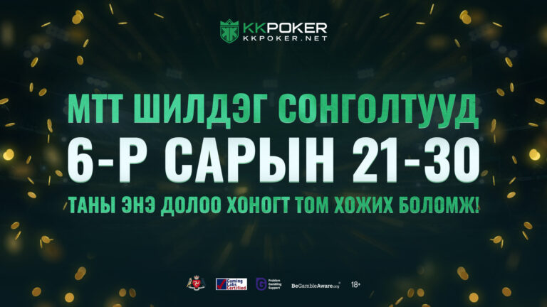Урамшуулал$950K+ Holiday CountdownKKPoker-ын жилийн хамгийн урамтай үе ирлээ! 2025 оны төгсгөлийг угтан, 2026 он хүртэл $950,000 гаруй шагналтай хамт тоолцгооё! $2,026 топ мөнгөн шагналтай Holiday Ladder Up тусгай даалгаварт нэгдэж, мөн $260K NEW YEAR MYSTERY, $150K JINGLE MYSTERY, MERRYSTACK GLORY, болон ПҮРЭВ ГАРАГИЙН ФРИРОЛЛ зэрэг олон сонирхолтой тэмцээнд оролцоорой! АГУУЛГА HOLIDAY LADDER UP! 12 сарын 7 – […] December 2, 2025$30,000 KK Legend 2025Kings Jackpot$555K+ Жилийн Ойн БаярХҮН БҮРТ ЗОРИУЛСАН ЦОО ШИНЭ RAKEBACK!100% Дүйцэх – Анхны Цэнэглэлтийн Покер Бонус$100 Урамшуулал – Анхны Цэнэглэлтийн Бонус$24 Бүртгэлийн Урамшуулал! Шинээр элссэн хүмүүст зориулсан Бэлгийн Багц!KK AvengersСар Бүрийн $12,000+ ФрироллАнхны Цэнэглэлтийн Покер Бонус! Шагнал $100!$3К Долоо хоног бүрийн MTT ЛидерсамбарӨдөр Тутмын ДаалгаварCash Game Лидерсамбар$20,000 Lucky KujiKK LEGEND 2025Super SpinUp Carnival 20252025 KKPoker Micro Master SeriesMarch Millions 2025! $1САЯ+ GTDKKGAME ЭХЭЛЛЭЭ!$750,000 үнэтэй Баярын Экспресс Эвент!KK LEGEND $18K+ ФРИРОЛЛ GVEAWAY$100K+ HALLOWIN ЦУВРАЛРИНГ ТОГЛООМ ДУРЛАГЧДАД ЗОРИУЛСАН KK ARCADE!$500K Mystery Glory: 4 Жилийн Ойн Баяр$135,000+ Micro Master Series 2024KK LEGEND 3!Route $66K Mystery Bounty5 САРЫН PLO5!$10K Legend KO Лидер самбарKKPoker VEGAS DREAM 2024$55K+ Easter Extravaganza$2M+ GTD MARCH MILLIONS 2024KK ДОМОГ У2: $10K+ ФРИРОЛЛ ЧАЛЛЭНЖ !$700K GTD-тэй ШИНЭ ЖИЛИЙН ЦУВРАЛ$300К GTD ЗУЛ САРЫН БАЯРKKPoker АНХ-УДААГАА $1САЯ MTT ЭВЕНТ ЗОХИОНО!KK LEGEND: $50,000+ MTT ЧАЛЛЕНЖ$250К Halloween ШАГНАЛЫН ЭВЕНТ$20,000 AOF Treasure АГНА!$200K РЕКОРД-ЭВДСЭН ОЙН ШАГНАЛЫН САН!SCRATCH TO WIN: 3 ЖИЛИЙН ОЙJULY 2023 – KKPOKER PROMOTIONS!AOF ДУРЛАГЧИД БЭЛЭН БАЙГААРАЙ! ГАЙХАЛТАЙ БОНУС ТАНЫГ ХҮЛЭЭЖ БАЙНА!JUNE PROMOTIONS$200 БОНУСАА АВААРАЙ! KKPOKER-д НАЙЗУУДАА УРИАРАЙ!2023 ОНЫ 5-Р САРЫН KKPOKER УРАМШУУЛЛУУД! ТОГЛО, ХОЖ!77.8 сая₮ GTD-тай МОНГОЛЫН ШИЛДЭГ ЭВЕНТ ЗАРЛАГДЛАА!БИД ЛАС ВЕГАС-руу явах $15К БАГЦ БЭЛЭГЛЭЖ БАЙНА!ОЛОН-ӨДРИЙН $100К Easter Hunt ЦУВРАЛ!2023 оны 3-р сарын KKPOKER УРАМШУУЛЛУУД! ТОГЛО, ХОЖ!LOV3 ЦУВРАЛ 2023! $65K НИЙТ ШАГНАЛЫН САН2023 ОНЫ 2-Р САР! KKPOKER УРАМШУУЛЛУУД! ТОГЛОЖ, ОЛ!ROCKET SERIES ИРГЭН ИРЛЭЭ! $25K GTD ГАРУЙ!KKPoker Promotions! Play & Earn! January 2023KKPOKER УРАМШУУЛАЛ!SCRATCH THE WINNER! $20K+ ХӨЛБӨМБӨГИЙН ДЭЛХИЙН ЦОМЫН СУГААЛГА!KKPOKER УРАМШУУЛАЛ!ROCKET ЦУВРАЛ ЭХЭЛЛЭЭ! $26K GTD ДАВСАН!HALLOWEEN TRICK OR TREAT БАТАЛГААТАЙ ШАГНАЛ!KKPOKER УРАМШУУЛАЛ!K.O. MYSTERY CHEST HUNT ИРЛЭЭ! ХЯЗГААРГҮЙ ШАГНАЛ!KKPoker 2 дахь ойн баяр!$7K FLASH FEVER Тэргүүлэгчдийн самбар: 7-р сарын 3-9$5,000 PLO5 ТЭРГҮҮЛЭГЧДИЙН САМБАР: 6-Р САРЫН 19 – 26$50K+$3K Arena PKO: 13-18 JuneLUCKYFLIP ИЛҮҮ ИХ ШАГНАЛ ӨГЖ БАЙНА$100K Thunder Freeroll ЦУВРАЛ! АМЖИЛТЫН ШИЛДЭГ ЗӨВЛӨМЖҮҮД!$100K THUNDER FREEROLL ЦУВРАЛ ЗАРЛАА!$100K GLORY PKO БУЦАЖ ИРЖЭЭ! ОЛОН ӨДРИЙН ОДОО KKPOKER ДЭЭР ИРЛЭЭ!PLO5 НААДАМ: $50,000 ҮНЭГҮЙ ОНЦГОЙ УРАМШУУЛАЛ$100K KKPoker CUP-ын төлөө $25,000 Giveaway!Сарын тасалбарын карт! 100% илүү үнэ цэнэтэй6-р сарын 21-30 МТТ Онцлох хуваарь6-р сарын 13-20-ны MTT-ийн хуваарьAOF Blitz тоглоод БОНУС шагнал хүртээрэй$50K БАТАЛГААТАЙ HIGH ROLLERҮНДСЭН АРГА ХЭМЖЭЭ$8K Чингис PKO – 5-р сарын 22!АМРАЛТЫН ӨДРИЙН БААТАР БОЛООРОЙ!HIGH ROLLER Returns! $50K GTD 5-р сарын 2нд! ТАТАЖ АВААД ТОГЛОЖ ЭХЭЛ Android, iOS болон PC-д зориулсан KKPoker апп-аа татаж аваарай! Copyright © 2025 KKPoker. All Rights Reserved Copyright © 2025 KKPoker. All Rights Reserved